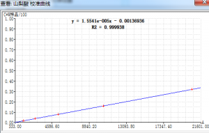 本方法對于市售雪碧中防腐劑做了相關實驗,選取相關濃度的標準品對三種添加劑做標準曲線,線性范圍良好,線性相關系數r大于0.999。根據標準曲線得出市售雪碧的苯甲酸含量,重復性好。